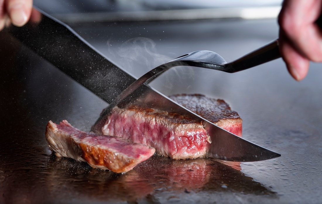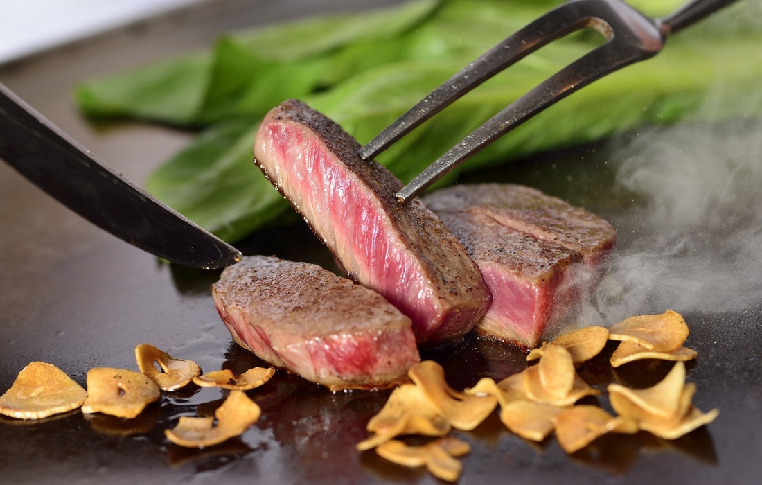 シェフの巧みな手業とともに、五感で味わうライブ感あふれる鉄板焼ランチは、まさに体験そのもの。地元・岡山県や各地の銘柄牛を、うま味を最大限に引き出す絶妙な焼き加減で仕上げます。目の前で繰り広げられる鮮やかな手さばきと、香ばしさが弾けるような鉄板の音が食欲をそそります。