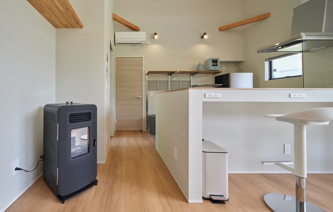 標高が高いため、夏は比較的涼しく快適に過ごせ、冬はペレットストーブの炎を眺めながら、ゆったりとした時間を楽しめます。