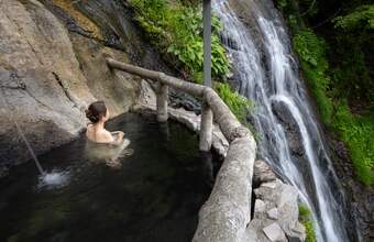 自家用車が入れない国立公園の中にある秘湯の温泉宿に、2人で宿泊するコースです。