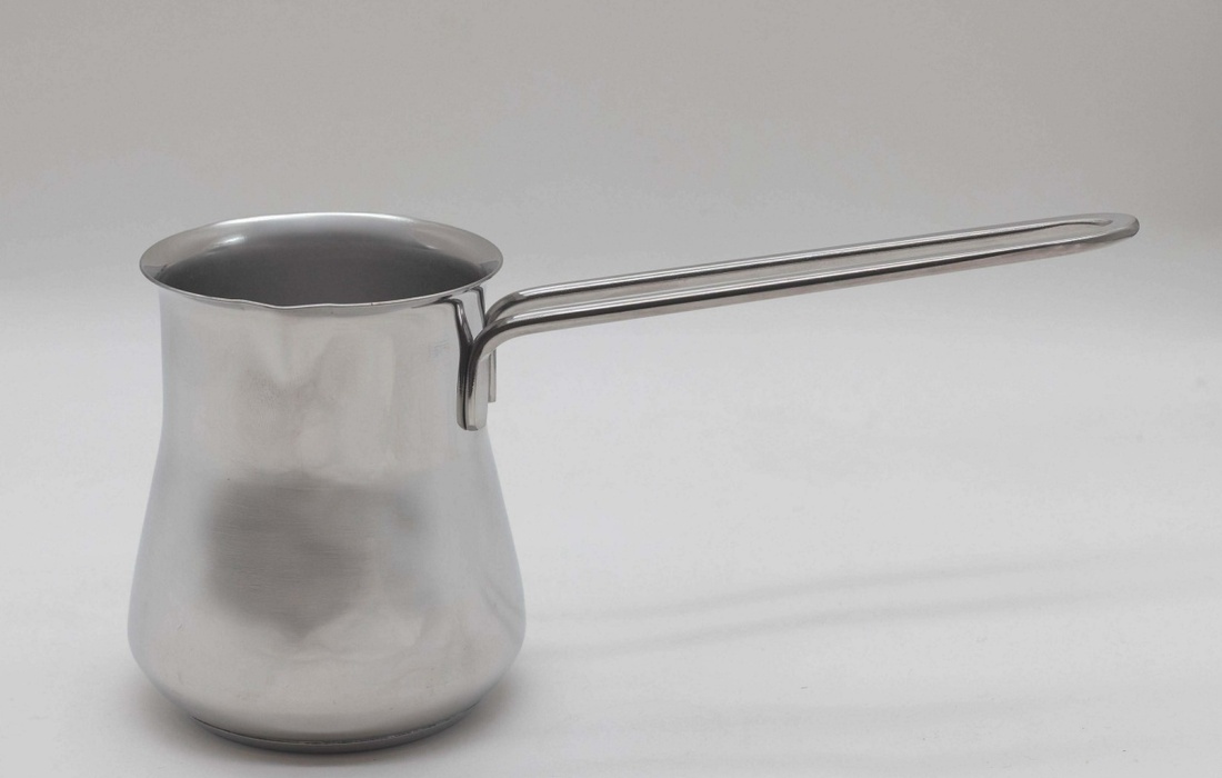 厚みと光沢のあるステンレス製の丈夫なポット。口径が大きく、茶葉やスパイスをまんべんなく広げて抽出を助ける形状です。家庭のコンロに直接置いて、茶葉とミルクを入れて煮込むことで本格的なチャイティーを楽しめます。