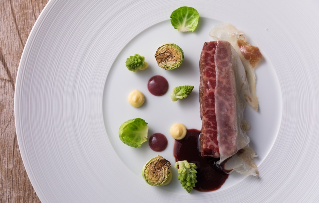 メインは素材のうま味を引き出す、薪(まき)火焼きで仕上げたグリル料理は燻煙(くんえん)香る一皿です。大阪城を望む眺望と、ワインセラーやアート作品が並ぶ空間が、食事のひとときを一層盛り上げてくれてくれるでしょう。