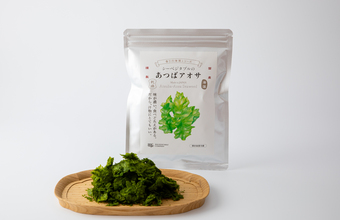 清浄な海水で育て、新鮮なうちに乾燥させた「あつばアオサ」。一般的にアオサと呼ばれているヒトエグサに比べて厚みがあり、ほろ苦さと味わいの濃さは、温かい汁物やバターやクリームなどの乳製品にもよく合う大人の味わいです。