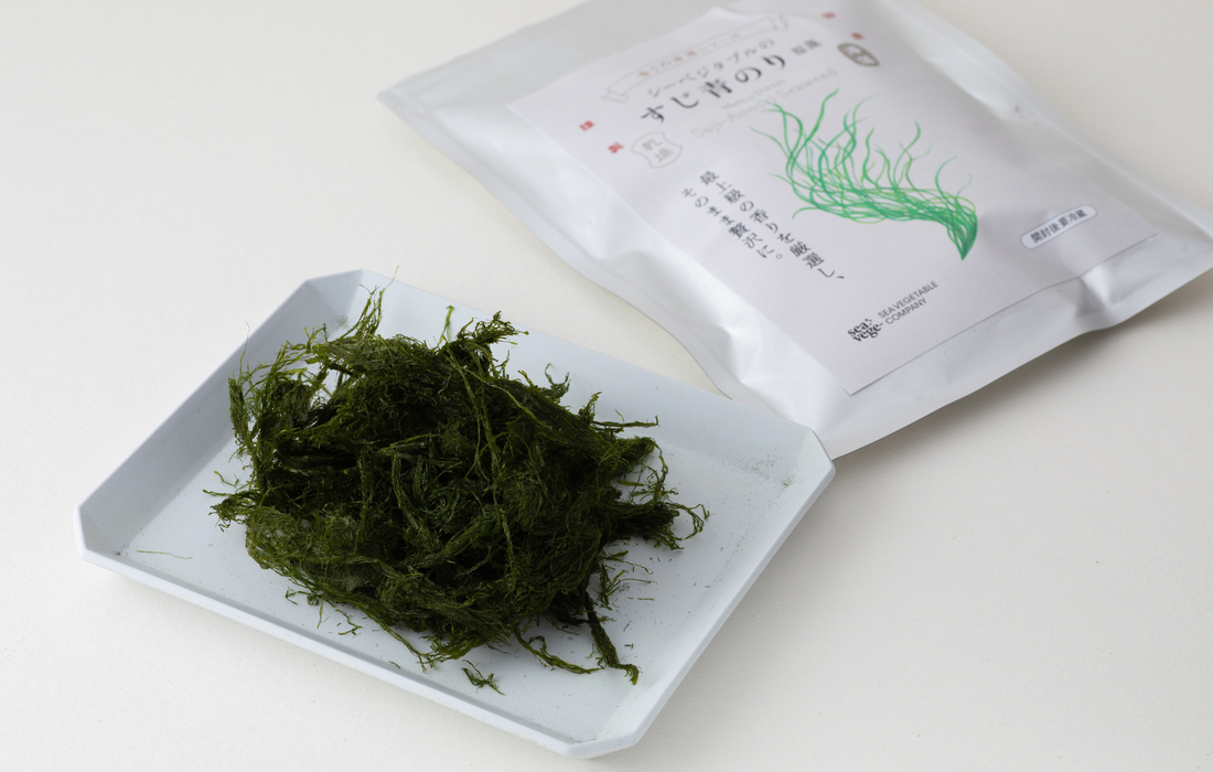 シーベジタブルが育てるすじ青のりの中でも、全体生産量の1%以下まで厳選した選りすぐりのすじ青のりのみを使用。その香り高さは、オイルやバターを使う料理やクリーミーな食材によく合います。