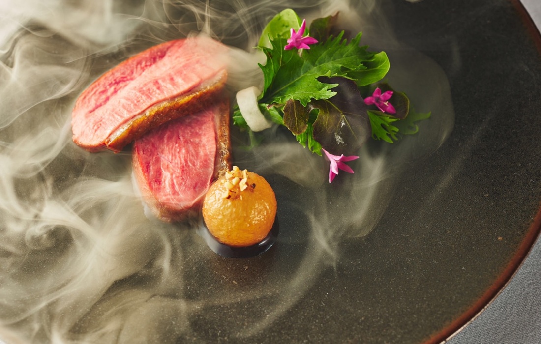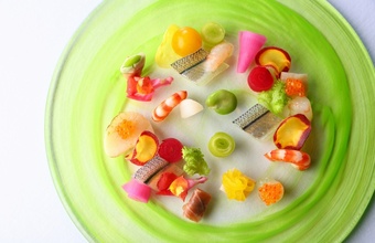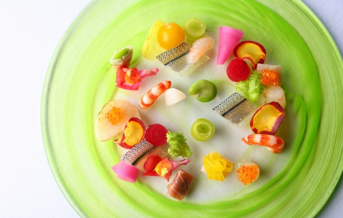 日本料理出身者である総料理長の杉山智規(スギヤマ・トモノリ)氏が手掛けるのは、繊細な和の技法を取り入れたフランス料理。