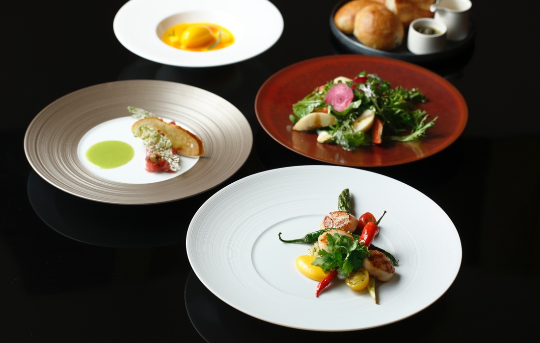 メインは素材のうま味を引き出す、薪(まき)火焼きで仕上げたグリル料理は燻煙(くんえん)香る一皿です。大阪城を望む眺望と、ワインセラーやアート作品が並ぶ空間が、食事のひとときを一層盛り上げてくれてくれるでしょう。