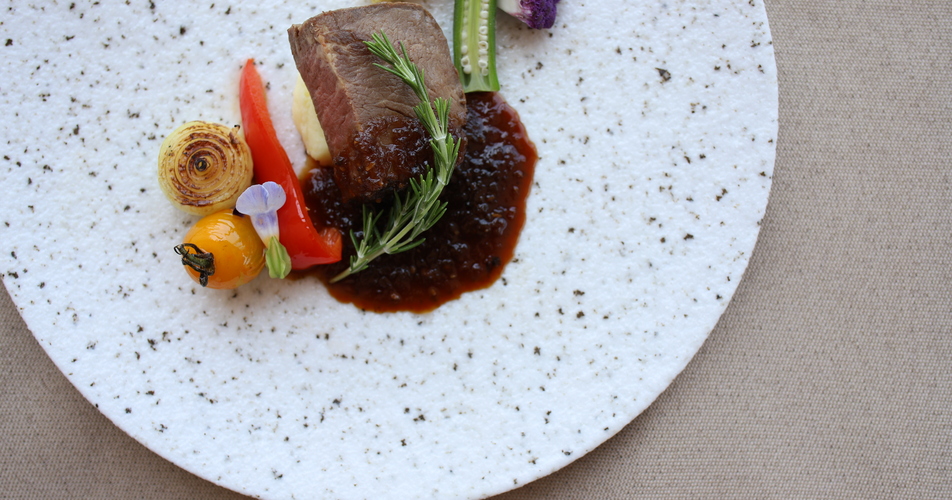 レストランで味わえるのは、「葉山の土地の色」を表現したコース料理。月ごとに変わるテーマカラーに基づいて料理が提供され、食材がもつ美しい色が輝きを放ちます。葉山をはじめとする三浦半島の旬の食材を使用し、地産地消にもこだわっています。