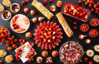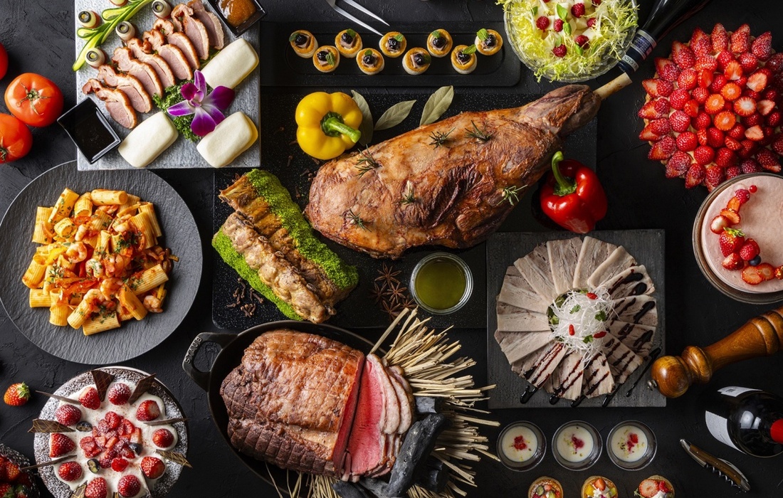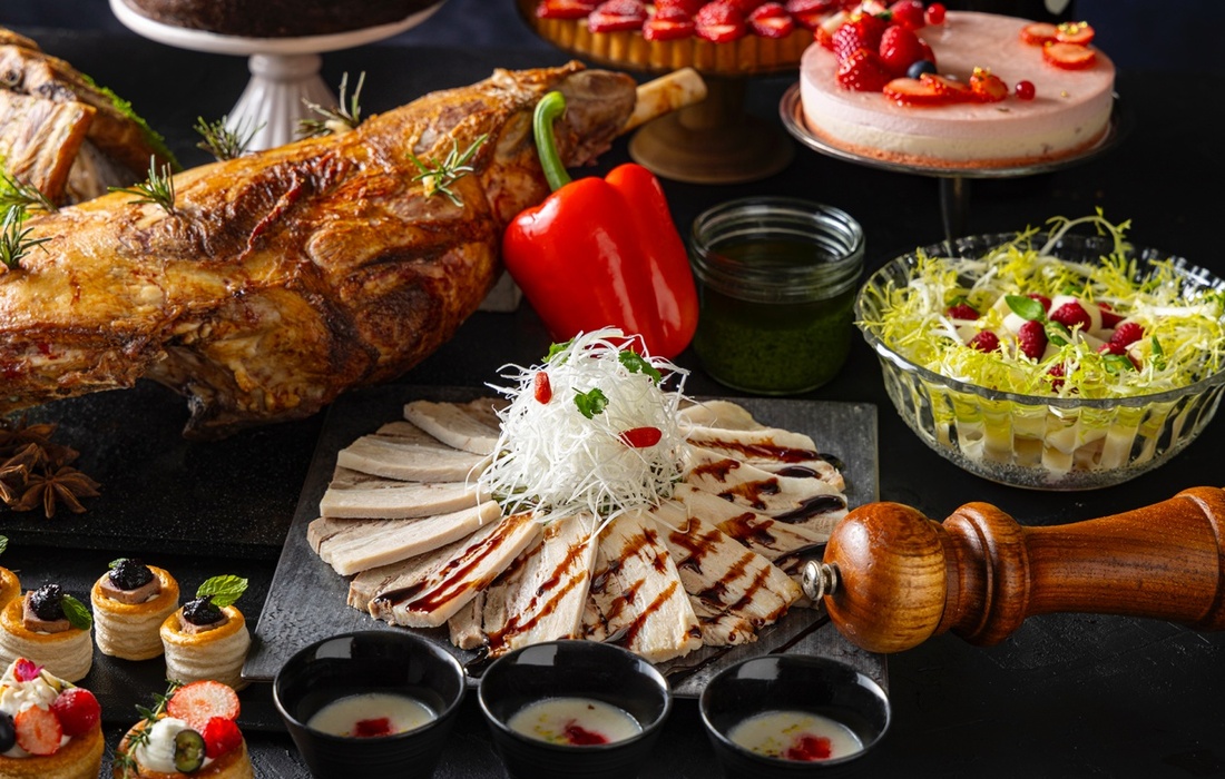 東京・新交通ゆりかもめ「台場駅」徒歩1分の「ヒルトン東京お台場」2階にある「グリロジー バー&グリル」。オープンキッチンを備えたレストランで、ダイナミックな肉料理と旬の鮮やかないちごスイーツの数々を心ゆくまで堪能できる「ミート×ストロベリー ビュッフェ」を期間限定で体験できるコースです。