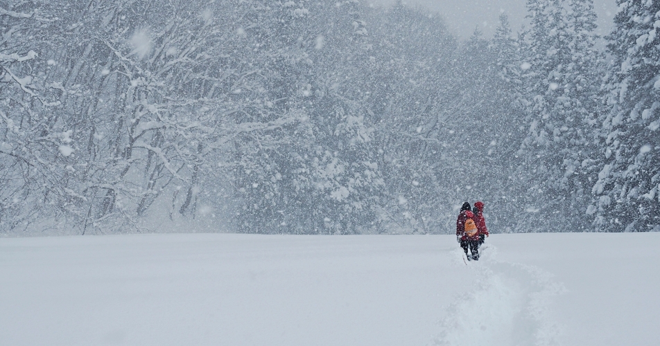 半日カンジキ雪遊びウォークプライベート親子コース伝統の和カンジキで歩く、幻想的な豪雪地帯の原風景