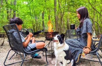 ジャイロライドの後は、併設のアウトドアカフェで、コーヒータイム。火打石を使ってたき火を起こし、コーヒー豆を焙煎します。煎っているときのパチパチと弾ける音や、はぜた瞬間に広がる豆の香りは格別。挽きたて、淹れたての香り高いコーヒーをどうぞ。希望すれば、たき火で作るポップコーンや焼きマシュマロ付きスイーツセットに変更もできます。気軽にアウトドア体験を満喫できる1日となるでしょう。