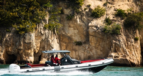 「海の四駆」とも呼ばれ、最高時速80キロメートル(45ノット)を誇る高速艇「リブボート」に乗って、広島県・尾道発着で向島(むかいしま)の周囲をぐるりと一周するアドベンチャークルーズコースです。