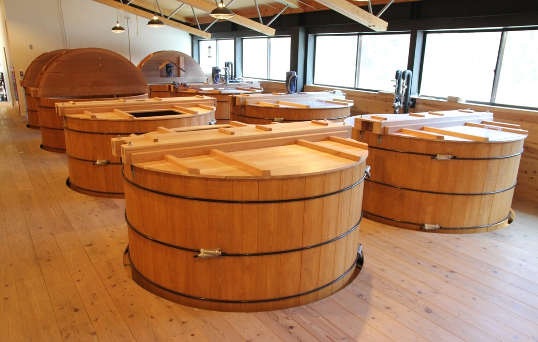 見学ツアーでは、閉鎖した「軽井沢蒸留所」から移設した歴史的な設備や、世界初の静岡産スギ製の発酵槽、世界で唯一と言われる薪の火で蒸溜するポットスチル(単式蒸留器)など、唯一無二の設備を間近で見学できます。