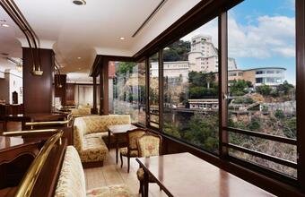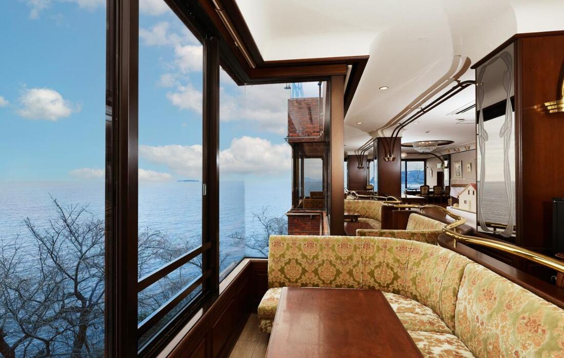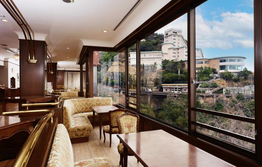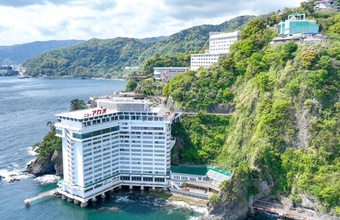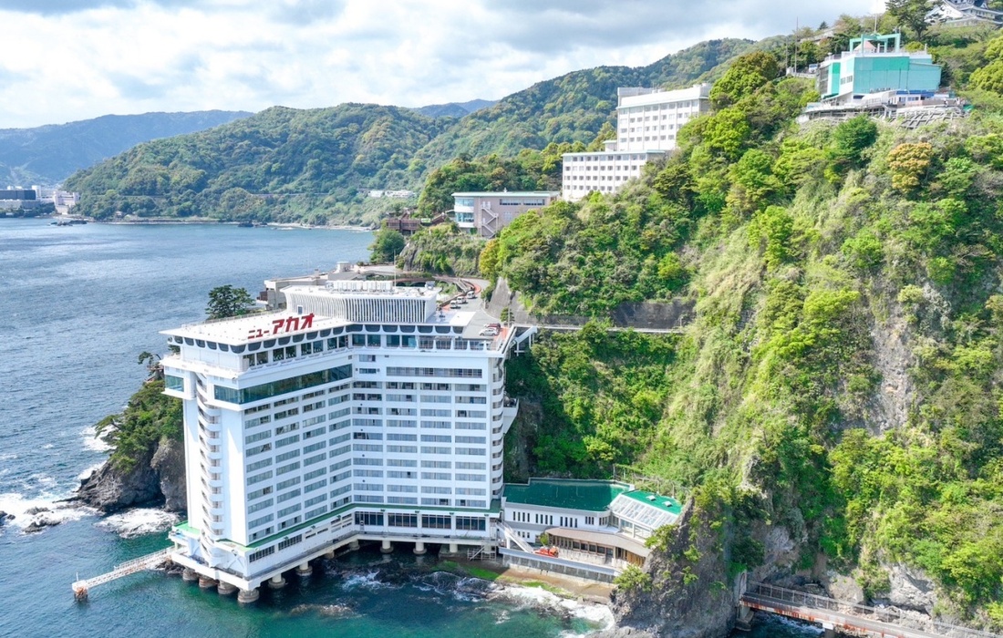 静岡県熱海市南部の名勝、錦ヶ浦(にしきがうら)。断崖絶壁に建ち、錦ヶ浦と相模灘を臨むリゾートホテルが「ホテルニューアカオ」です。当コースでは、カフェでのスイーツと日帰り温泉を楽しめます。