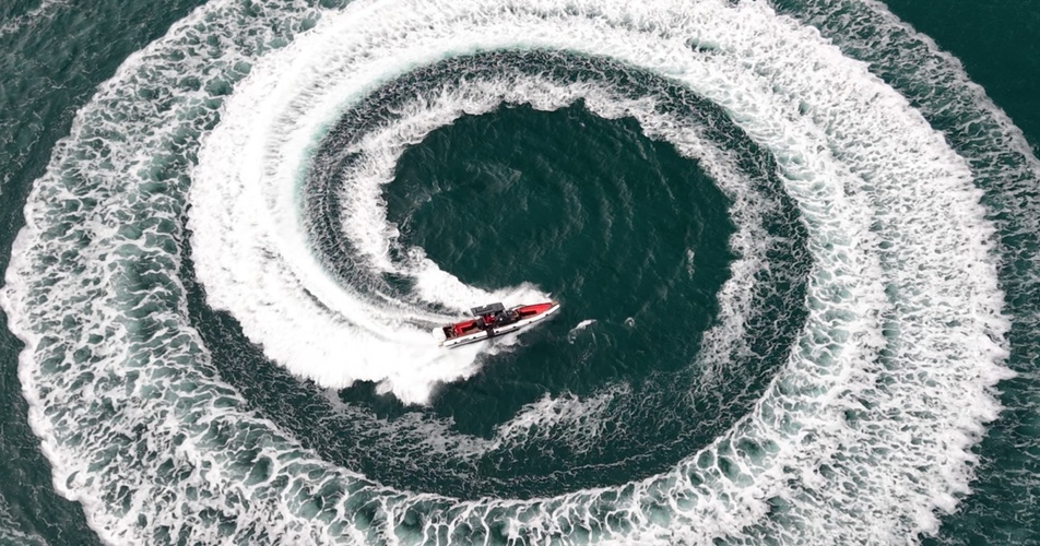 尾道水道を抜けると、風になり水面を滑るように加速するリブボートならではの体験が待っています。高速回転しながら進行方向を変える「トルネードターン」はリブボートの安定性あっての技。ジェットコースターのようなスリルを味わえます。