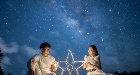 天体観測の後は、プロカメラマンによる星空フォト撮影へ。星型やハート型、ガーランドなどイルミネーションライトを用意し、構図やポーズにこだわります。プロならではのテクニックで、幻想的でユニークな一枚を撮ってくれるでしょう。カップルの記念日や新婚旅行で特に人気があるそう。カメラマンがポージングの提案をしてくれるため、写真が苦手な人も、物語の主人公になったつもりで撮影をお楽しみください。