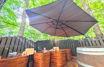 当コースでは敷地内にある「森の天空サウナ&露天風呂」でのプライベートサウナを体験できます。