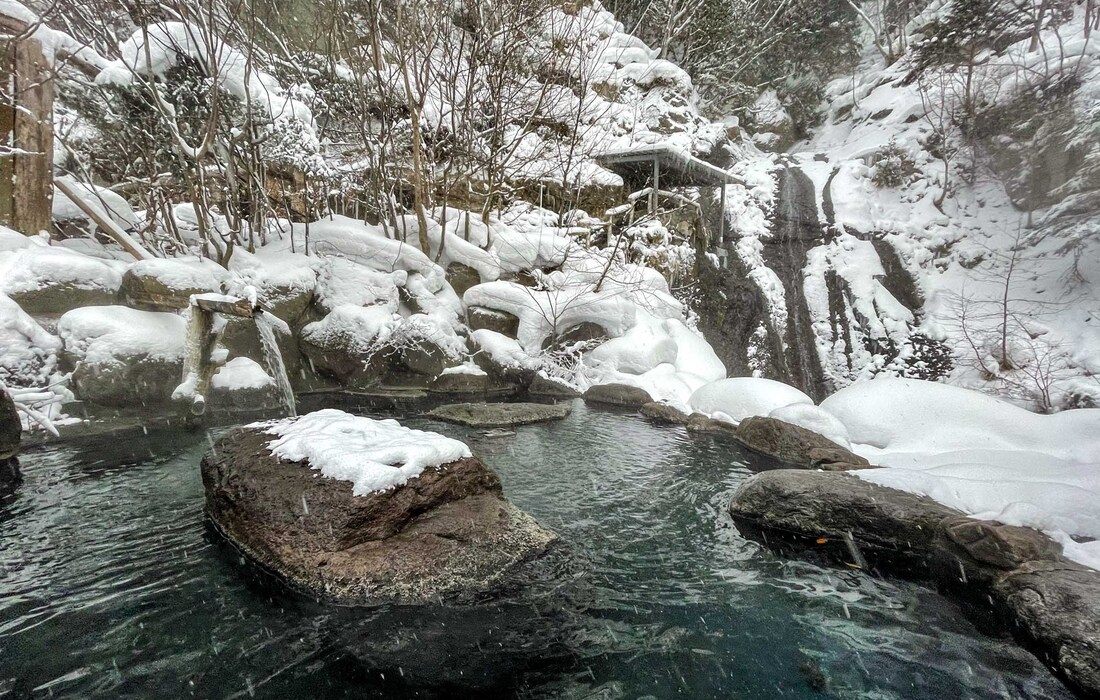 関東最後の秘湯と呼ばれる奥鬼怒温泉郷で、1929年に開業した八丁の湯。開業時からある「雪見の湯」など、4つの露天風呂と2つの内湯があります。3つの露天風呂は、今では珍しい混浴(湯あみ着バスタオル着用可、女性専用時間あり)です。
