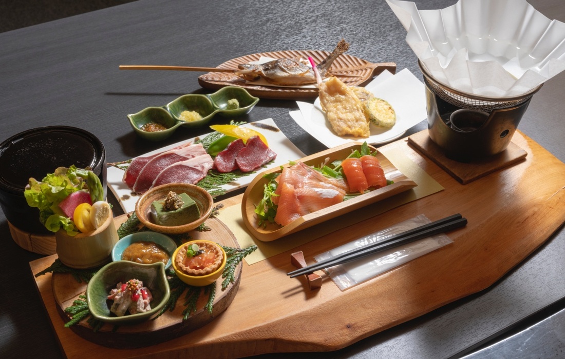 温泉といえば、食事も魅力の一つです。旬の食材、土地の食材をふんだんに使った料理がふるまわれます。