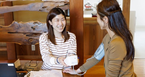 当コースは、日帰り温泉を楽しむだけでなく、「湯治カウンセラー」から「温泉カウンセリング」を受け、体質や体調にあわせた泉質・入浴方法を提案してもらえるのも大きなポイントです。カウンセラーは、厚生労働省が認定する「温泉利用指導者」資格に加え、さらに看護師または保健師資格を保持。体の状態や入浴習慣をヒアリングし、血圧・血管年齢・自律神経バランス・ストレス度・柔軟性などを入浴前に計測、その結果からあなたに合った入浴方法を提案します。。