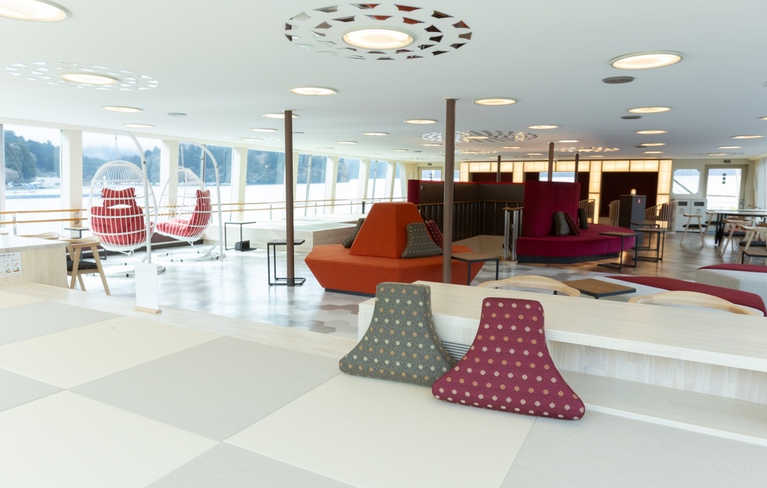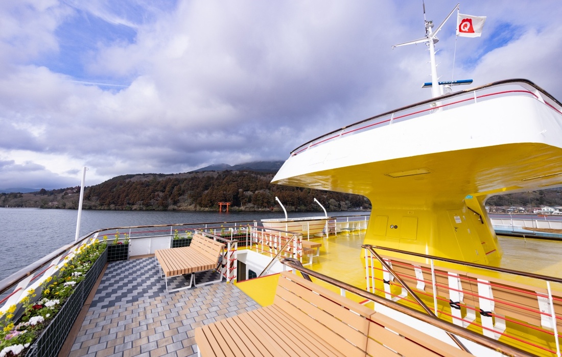 同船は、「箱根・芦ノ湖に浮かぶ緑の公園」というコンセプトで2023年2月に誕生。富士山やそのほかの山々の大自然が広がる箱根・芦ノ湖の旅を、空と風と一体になって楽しんでほしいという思いが込められています。