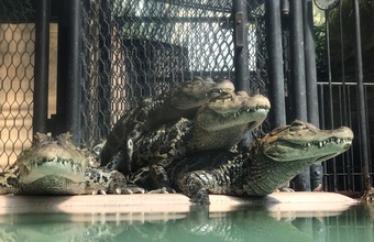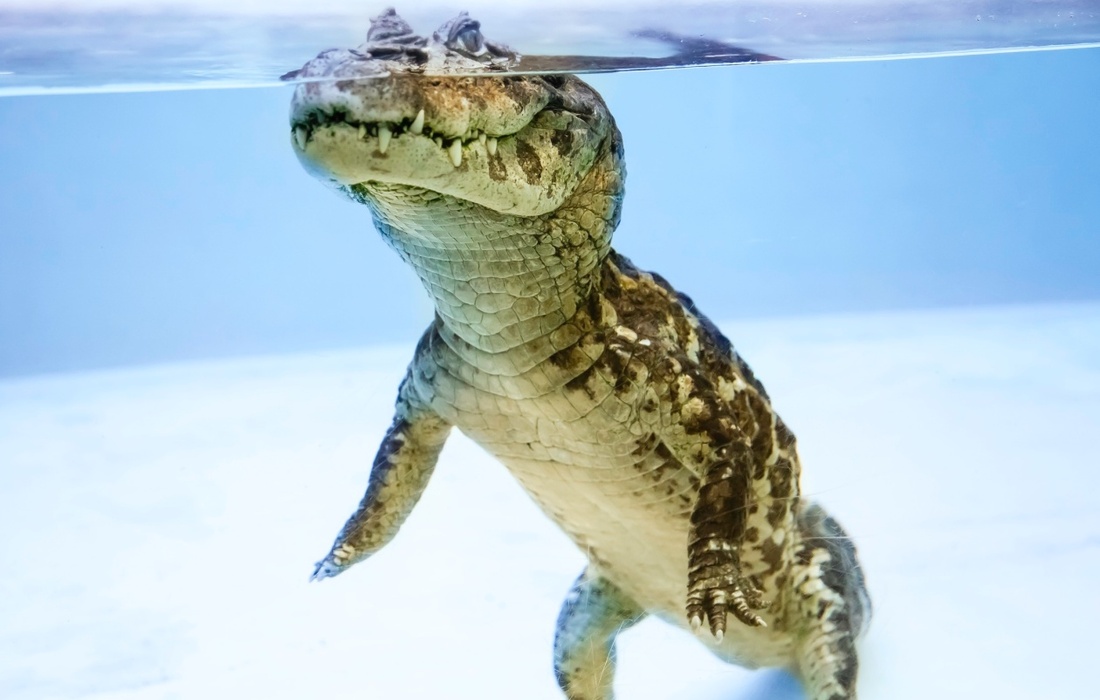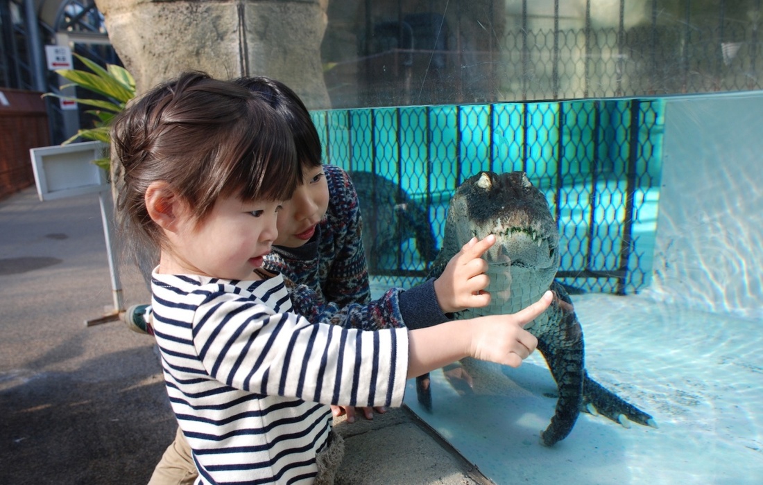 体長4メートルを超えるイリエワニをはじめ、16種(交雑含む)約130頭のワニが飼育され、ワニの種類としては世界一を誇ります。ガラス水槽越しに見えるワニの立ち姿や、大きな鶏肉のかたまりを一口で食べる食事シーンなど、迫力あるワニの様子を見ることができるでしょう。