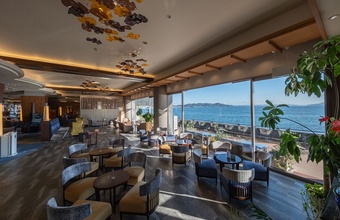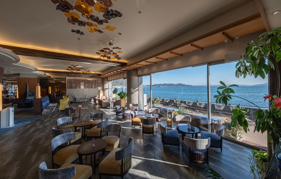 下船後は、「ホテル鷗風亭(おうふうてい)」館内の大浴場にて「鞆の浦温泉 天然ラジウム温泉」を満喫。ロビーの窓から広がる絶景と共にカフェタイムを楽しめます。
