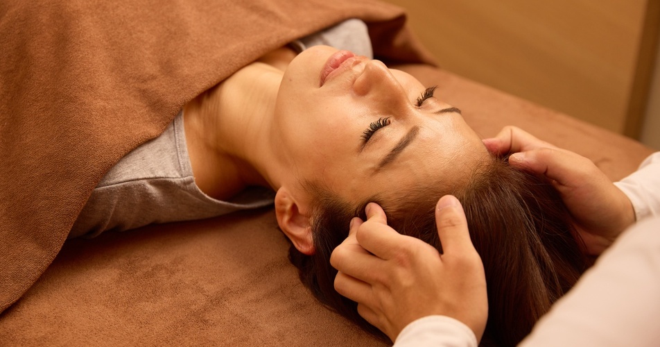 当コースで体験できるのは、ドライヘッドスパ&首肩ケア。頭・首・肩・デコルテまわりをじっくりとほぐします。筋肉に深く持続した圧をかける「深層筋アプローチ」という独自の技術は、同院の大きな自慢のひとつ。頭や顔に疲れを感じている人や、眠りが浅い人にもおすすめです。