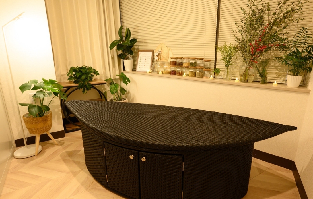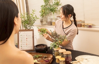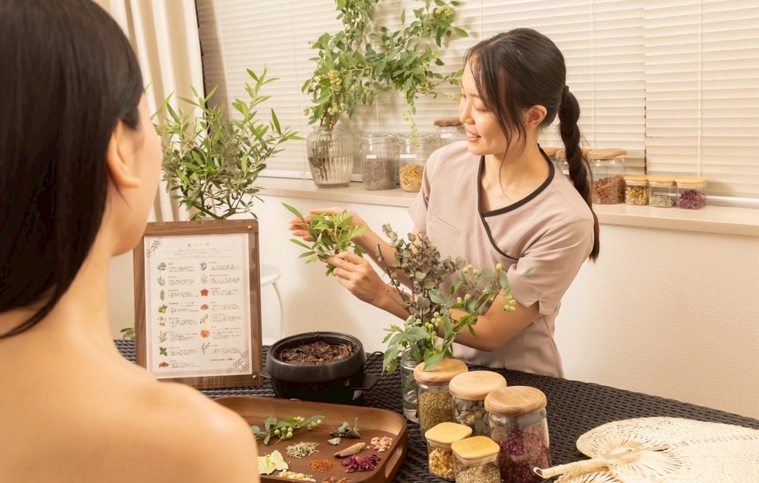 同店では、その日の体調や好みに合わせ、スタッフが生ハーブをその場でブレンドしてくれるのが特徴です。新鮮なハーブの香りが満ちる心地よい空間で温まりながら、同時にボディケアとドライヘッドスパの施術を受けられます。一人ひとりに合った丁寧なカウンセリングで、その日のコンディションに合わせた最適な施術で身体や頭部の疲れをやさしくほぐしていきます。
