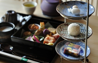 甘味とお食事を嵐山の美景と共に愉しめるアフタヌーンティーセット。飲み物には、月替わりのフレーバー煎茶やオーガニックティー、コーヒーや紅茶など全24種類。変遷する嵐山の情景と悠久の流れを湛える翡翠色の保津川を望む特等席、「茶寮八翠」にて午後のひと時をお過ごしください。