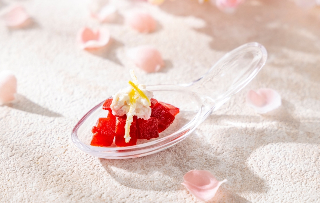 ・新玉ネギと豆乳のスープ 桜の香り