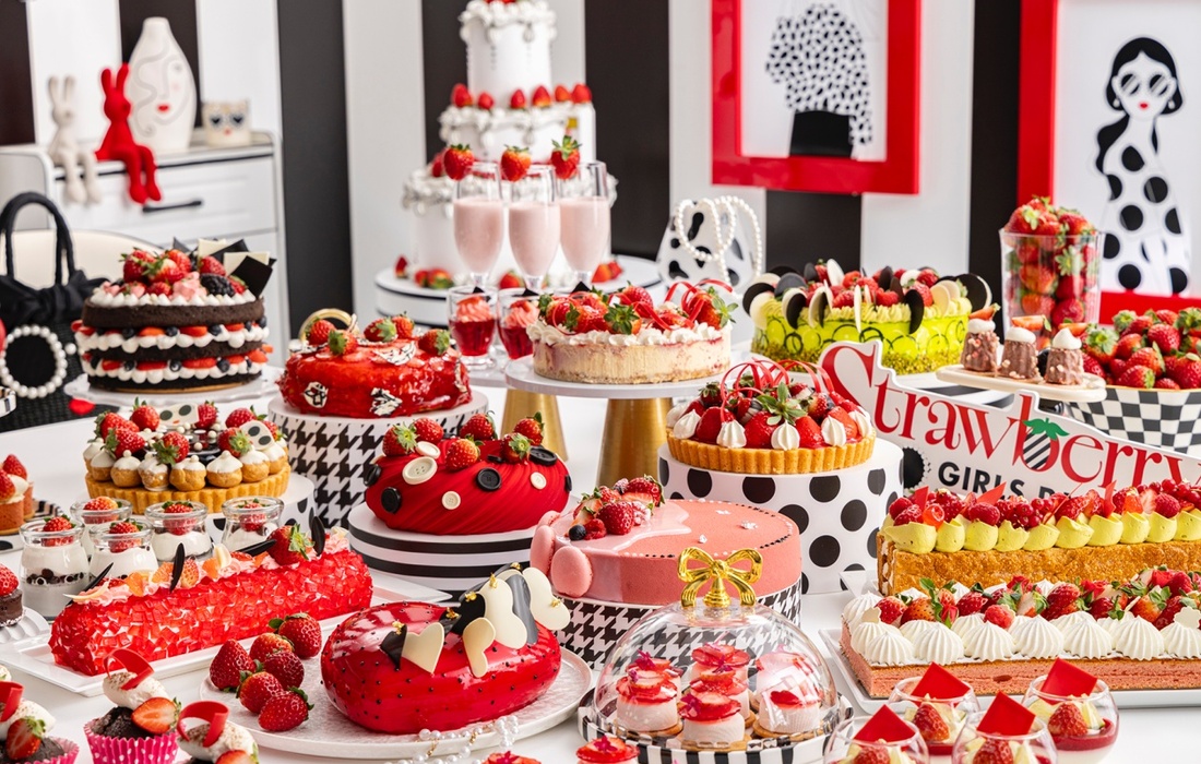 毎年恒例のいちご尽くしのスイーツビュッフェ。今年は“モノクロ・ガールズパーティー”をテーマに、女の子のお部屋をイメージした2Dとリアルが交差するデコレーションの中、たっぷりの苺を用いた20種類以上のストロベリースイーツが、まるでドレスやアクセサリーのように華やかに並び、空間を甘く彩ります。フレッシュ苺や8種類の軽食もお好きなだけお楽しみいただける、至福のストロベリースイーツタイムを心ゆくまでお楽しみください。