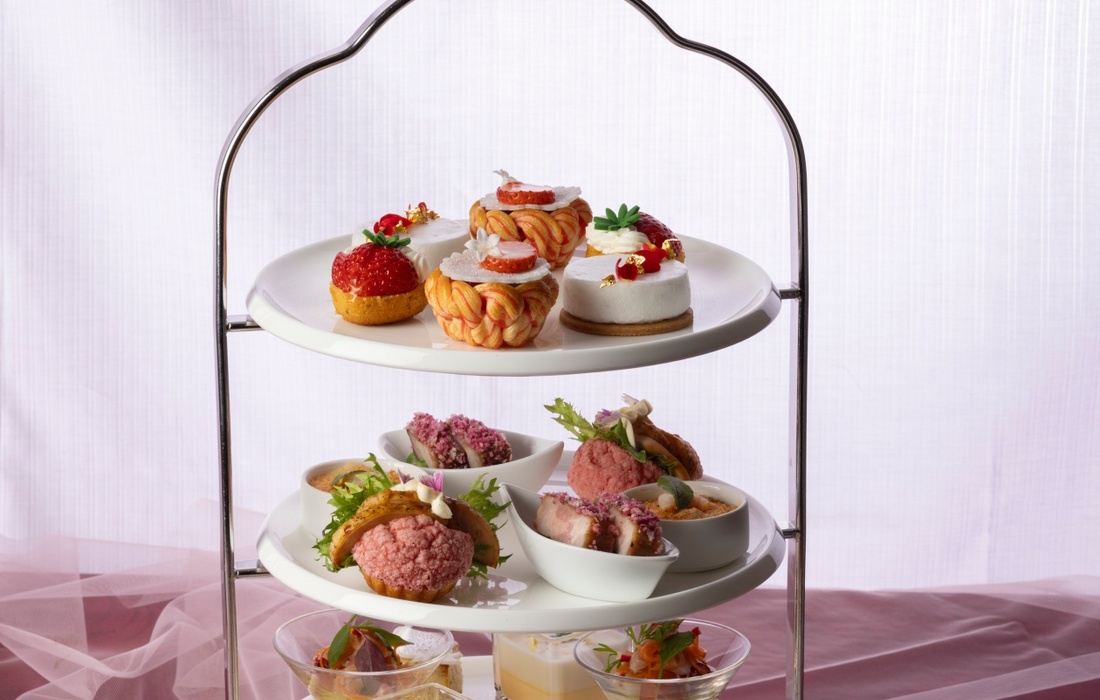 季節の苺をふんだんに使用したスイーツと春を感じる食材を使用したセイボリーをご用意いたします。