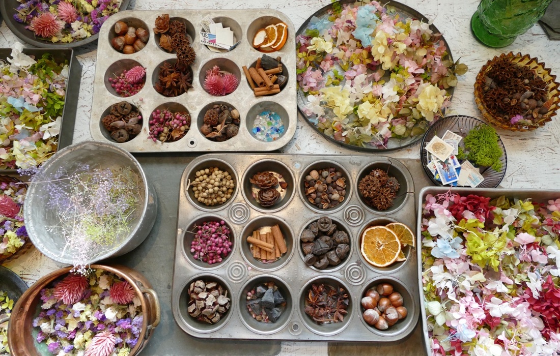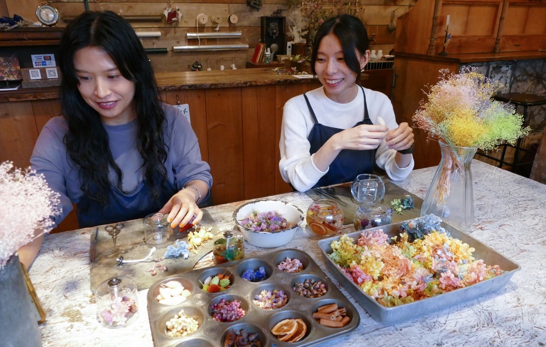 紹介文 | ドライフラワーの専門店として2016年にオープンしたお店。店内には色とりどりのドライフラワーが吊るされ、こだわりのアンティーク家具や小物などが飾られています。まるで別世界に迷い込んだかのような空間で、ドライフラワーの魅力を楽しむワークショップが体験できます。 |