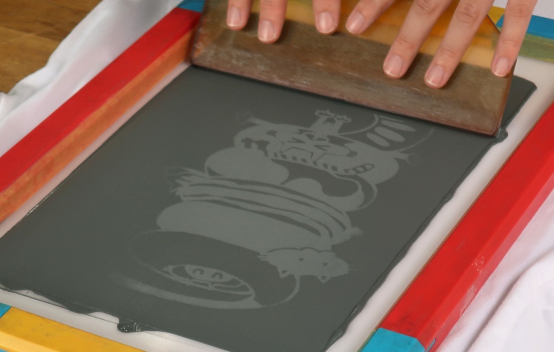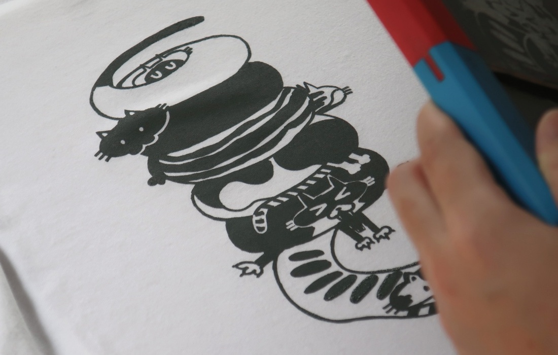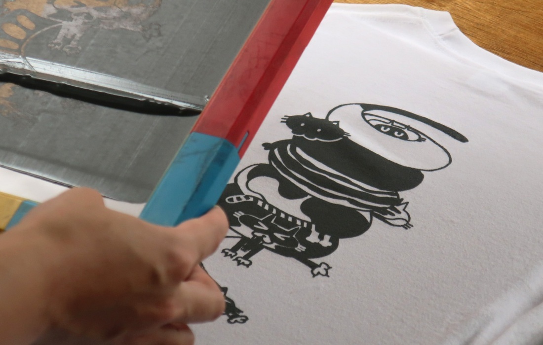 シルクスクリーンは、孔版印刷と呼ばれる技法の一種で、絵柄の部分だけインクが通過する孔(あな)を開けた版を使って、インクを孔から押し出して印刷します。アナログな手法だからこそ味わえる風合いが魅力で、愛着がわきます。
