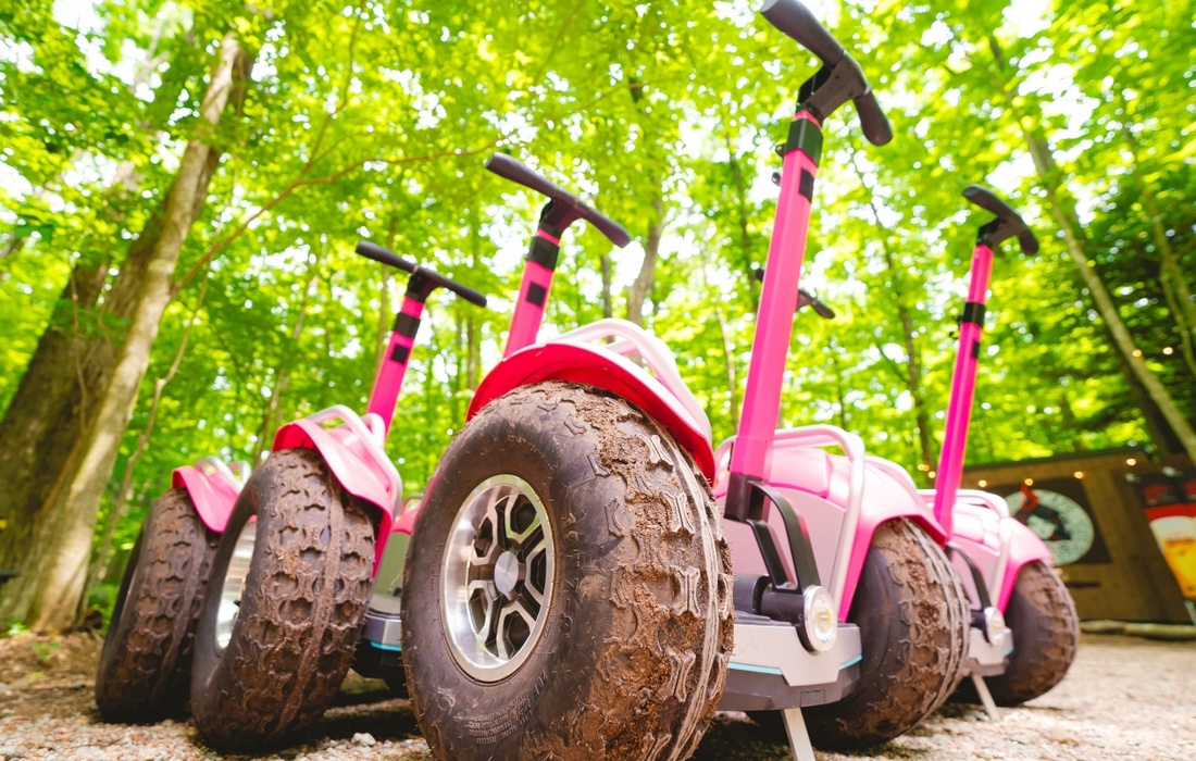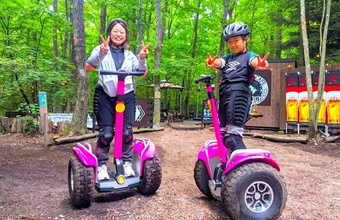 コンセプトは「森と遊ぼう!」で、フィールドは約10,000平米の広葉樹の原生林。ジャイロライド用に作られた周回コースを駆け巡れます。コースは、途中で枝分かれしており、初心者向きの「簡単コース」から、細い林道や丸太を避けながら進む「チャレンジコース」などから選択。コースなど複数コースを選択可能です。はじめにレクチャーや練習コースの体験があり、明るくホスピタリティーのあるスタッフがサポートしてくれるので笑顔でチャレンジできます。おおむね5歳からおよそ80歳まで、幅広く楽しめます。