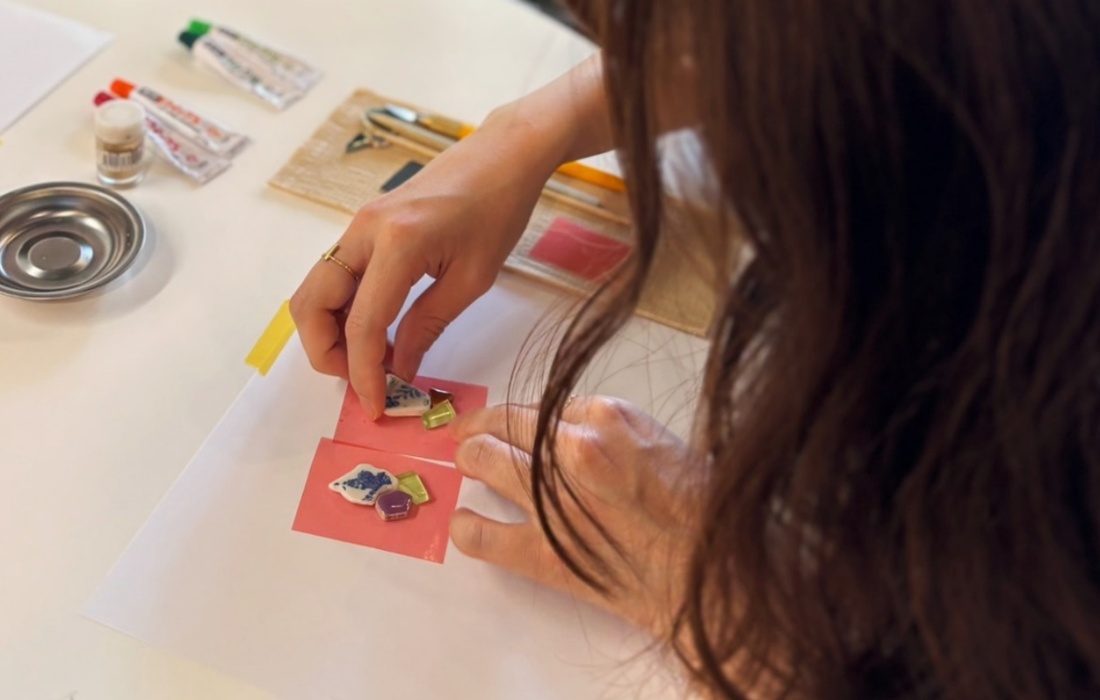 店舗が用意する陶器やシーグラス、モザイクタイル等のカケラを組み合わせて、箸置きを制作します。お好みの素材を組み合わせ、好きな形になるように仕上げることができます。完成品にはアタッチメントを付けてブローチとして使うことも可能。制作した箸置きは、当日そのまま持ち帰ることができます。
