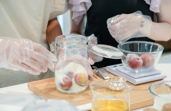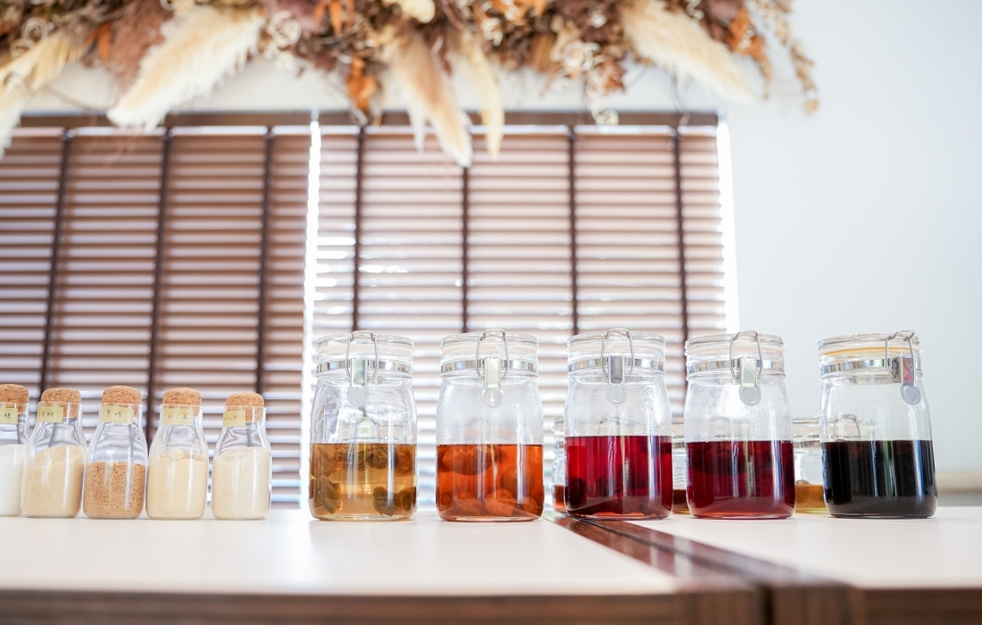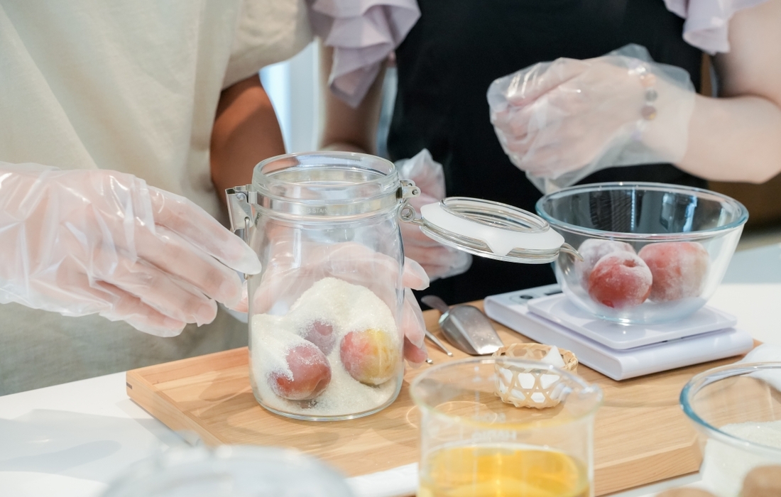 下準備では梅のヘタを丁寧に取り除き、砂糖と交互に瓶に詰めていきます。そこに酒を注いだ瞬間、梅の色がふわりと立ち上がり目の前で鮮やかに変化していく光景は、この体験ならではの感動的なワンシーンです。体験後は自宅でじっくり熟成させ、最短で約1カ月後に味わうことも、半年から1年かけて濃厚な味わいに育てることも可能です。当日の仕込みの時間だけでなく、自宅で熟成を待つ経過も愛おしく感じるでしょう。開封するときは、喜びもひとしおです。