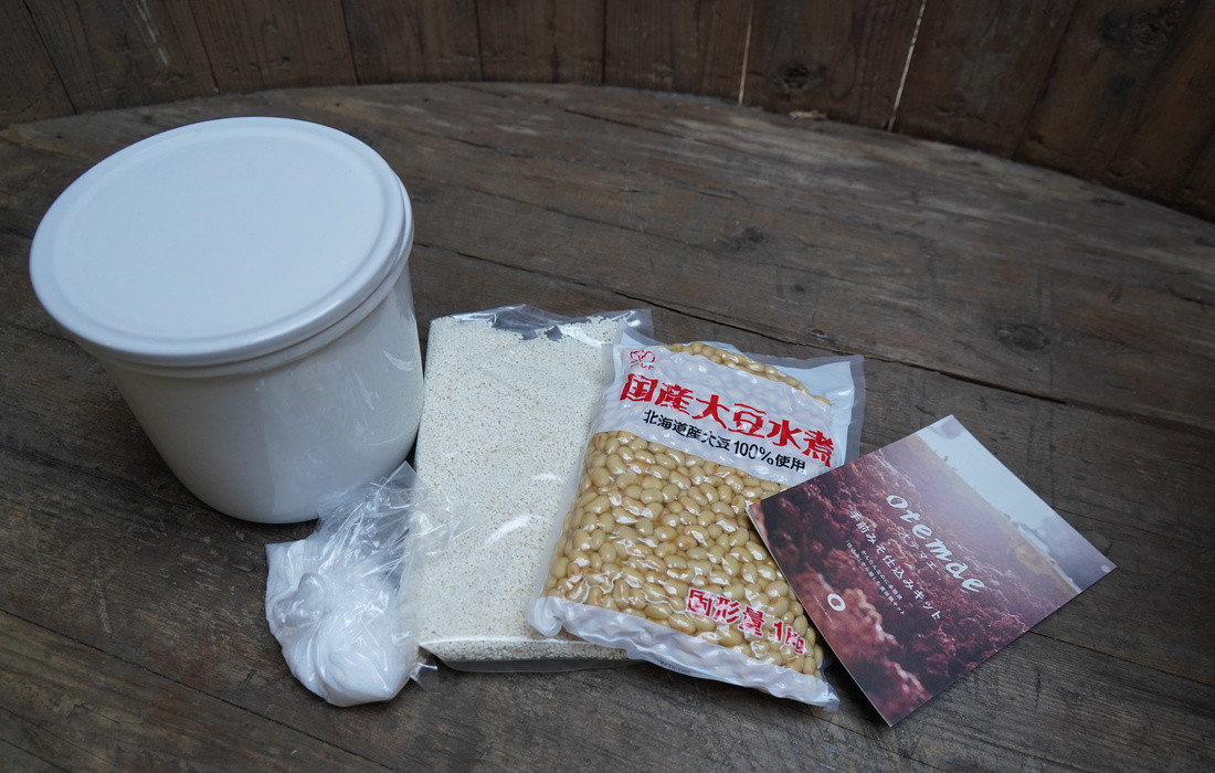 日本六古窯(にほんろっこよう)の一つである常滑焼(とこなめやき)の白かめでみそを仕込めるキットです。