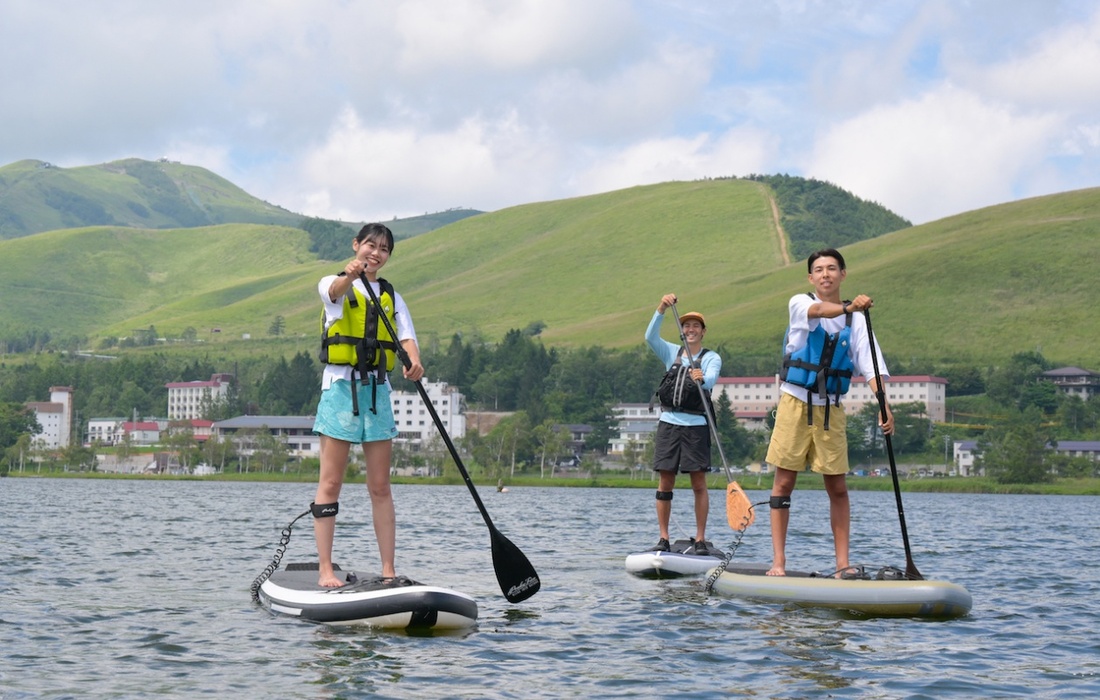 本州のほぼ中央、長野県と山梨県にまたがる八ヶ岳(やつがたけ)。その山麓に位置する白樺湖(しらかばこ)にて、初心者でも安心して楽しめるSUP(スタンドアップパドルボード)を体験できるコースです。専属ガイドが付いた、2人だけの完全プライベートツアーです。