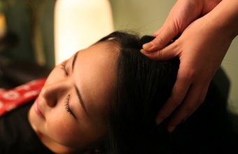 当コースではヘッドスパと同時に行うアイケアと、耳のツボを刺激する耳リフレクソロジー付き。目元の温、冷を交互に繰り返すケアは、デスクワークや運転など目のお疲れが気になる方におすすめ。また、耳については、ホットタオルで耳を温めてから、専用クリームで丁寧にケア。頭皮や首とつながっているため、顔周りにアプローチできます。