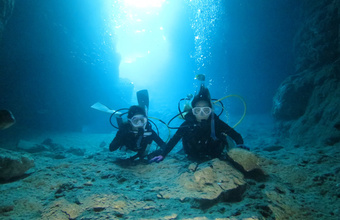 神秘的な青の洞窟でプライベートなダイビングを楽しめるコース。2人だけの専任インストラクターが丁寧な指導で水中の世界を案内します。
