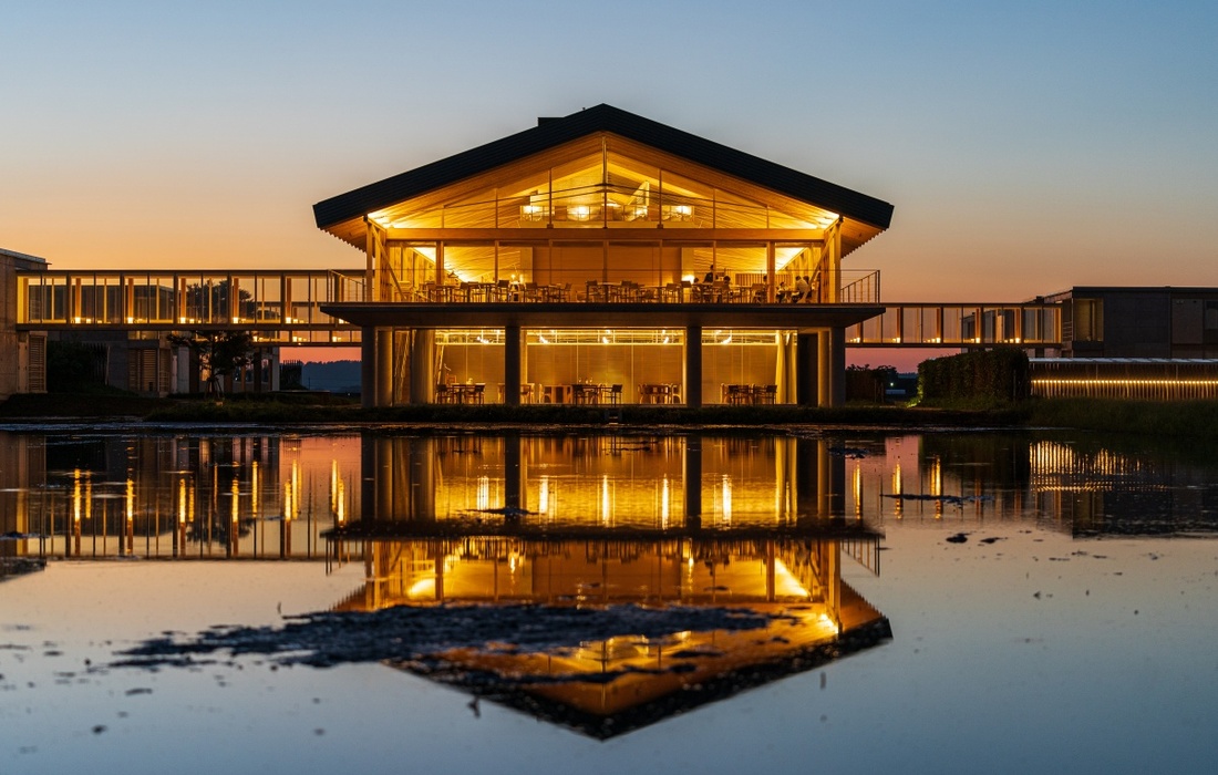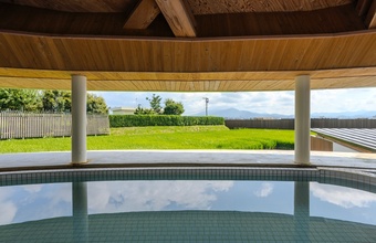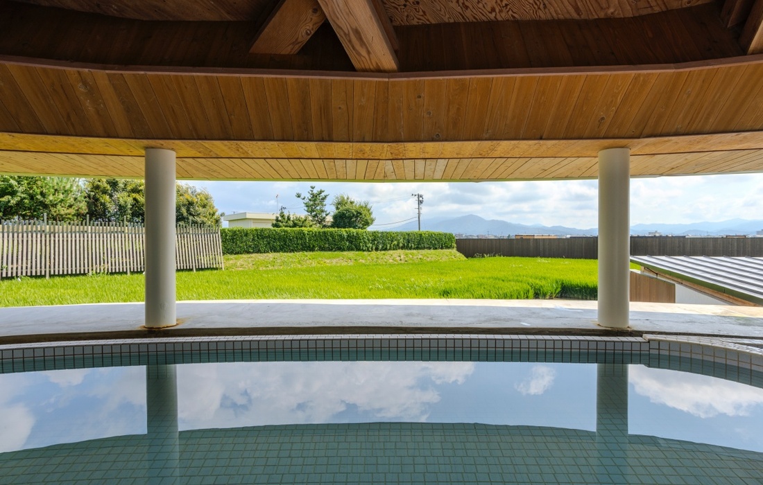 建物は、世界的建築家である坂茂(ばん・しげる)氏が設計を手掛け、どこに身を置いても田んぼの気配を感じられるようデザイン。水田を含めた建物の外観は、思わず写真に残したくなる美しさです。また館内には、源泉掛け流しの天然温泉や露天風呂、フィンランド式サウナなどもあり、旅の疲れをゆっくり癒やせます。