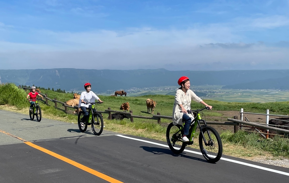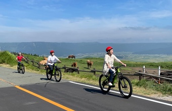 熊本・阿蘇のシンボルであり、日本最大級の草原である「牧野(ぼくや)」をEバイク(電動アシスト自転車)で巡るガイドツアーです。通常立ち入りが制限されている雄大な牧野へ、認定ガイドが案内します。