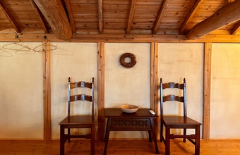 施設は、大きなお風呂(Bath)とベッド(Bed)のみのシンプルな作り。入浴と睡眠の時間以外は外へ出かけやすいよう、散策しやすい立地にあります。足を延ばして小布施観光を楽しんだり、歴史や絵画が好きな人は、ぜひ曹洞宗のお寺・岩松院(がんしょういん)へ。江戸時代の浮世絵師・葛飾北斎の晩年の傑作、「八方睨み鳳凰図(はっぽうにらみほうおうず)」天井画で知られています。農園の中で木々に囲まれた滞在と観光を両方楽しみたい人におすすめです。