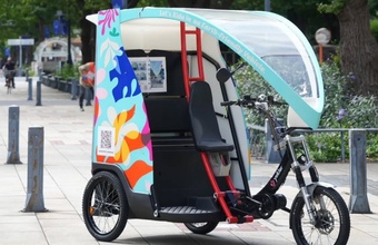 シクロポリタンは、電動アシスト付きの三輪タクシー。次世代の環境配慮型タクシーとして、2003年にフランスで登場しました。フランス生まれらしい洗練された車体デザインと、パワフルな電動アシスト機能が魅力です。