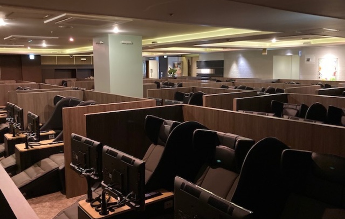 館内は、大人のための空間。お風呂巡りの合間には、プライベート感のあるリラックスラウンジではゆっくりテレビや映画も楽しめます。