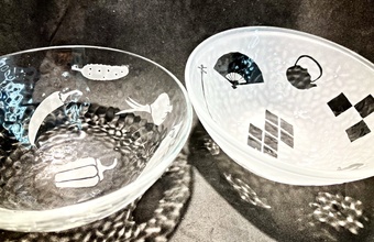 サンドブラストのクリア小鉢制作コース