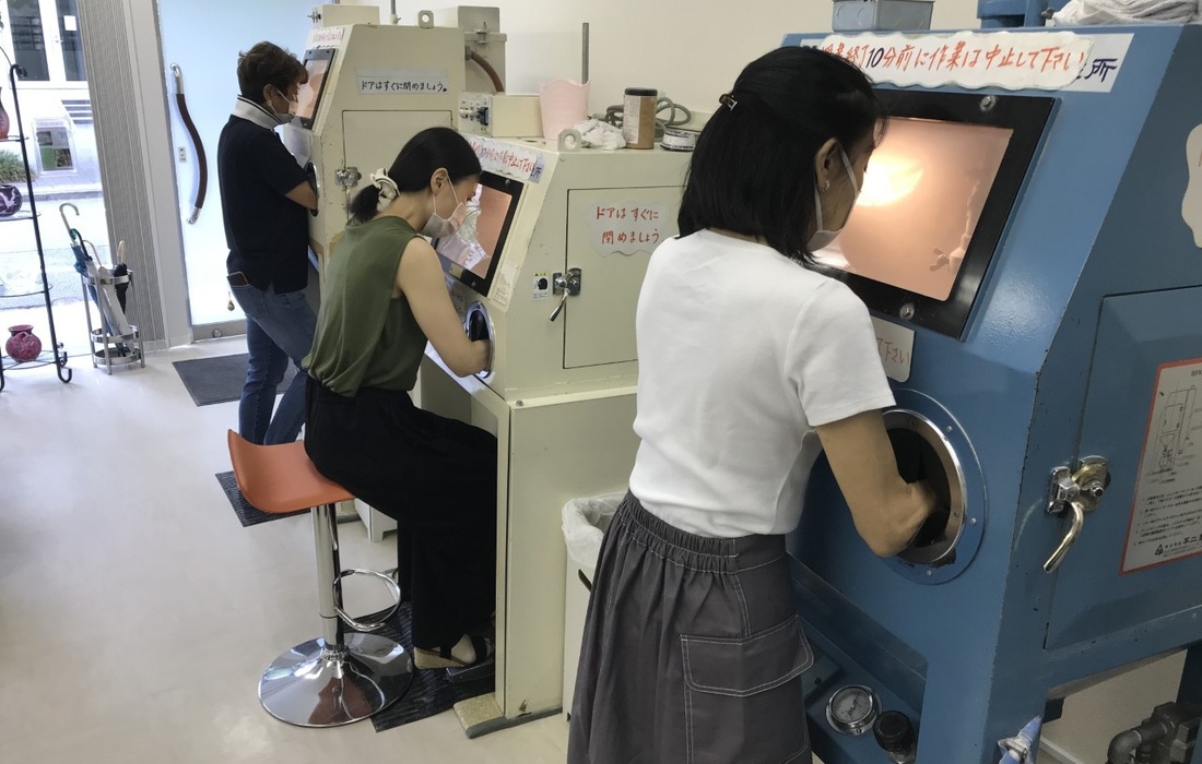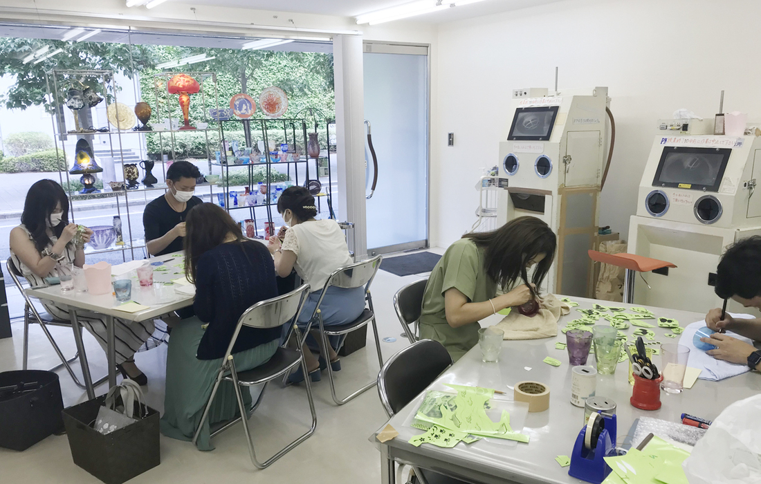 砂で彫刻するガラス工芸「サンドブラスト」で、クリアな小鉢を制作するコースです。完成した作品は、当日持ち帰りできます。