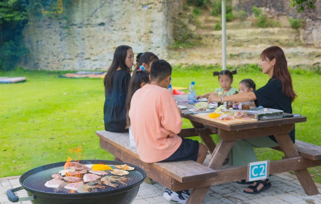 「大谷石(おおやいし)」の産地である栃木県宇都宮市大谷町(おおやまち)。2023年、そんな石の里にオープンしたのが複合アウトドア施設「カブル」です。当コースでは、歴史ある大谷石の採石場跡地にて、自然を感じながらバーベキューを楽しめます。
