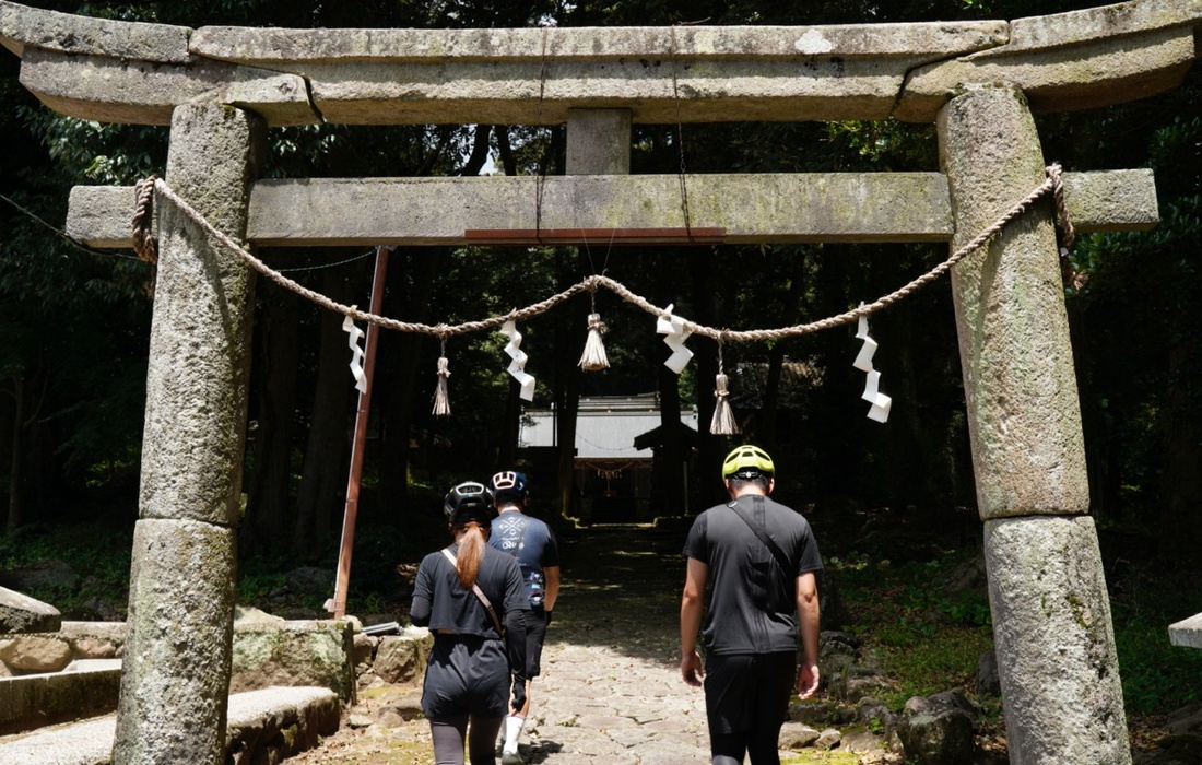 走行距離約13キロのコースには、神社や海岸といった立ち寄りスポットも含まれており、自転車を降りてゆっくり過ごす時間も確保されています。そのため、体力に自信がない方にもおすすめです。記念撮影をしたり、きらめく海に癒やされたりと、思い思いの時間をお過ごしください。