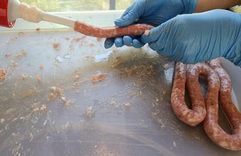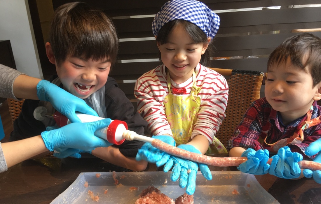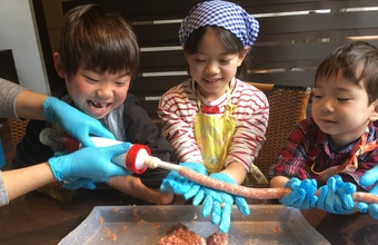 本コースでは、ウインナー作りを体験できます。鹿児島県産ブランド豚「茶美豚(ちゃーみーとん)」を使用し、ドイツ食肉加工コンテストで金賞を受賞したオリジナルレシピで作り上げていきます。完成したソーセージのうち1本は、茹でたてをその場で試食できるのも魅力。ソーセージ工房のお土産付きです。